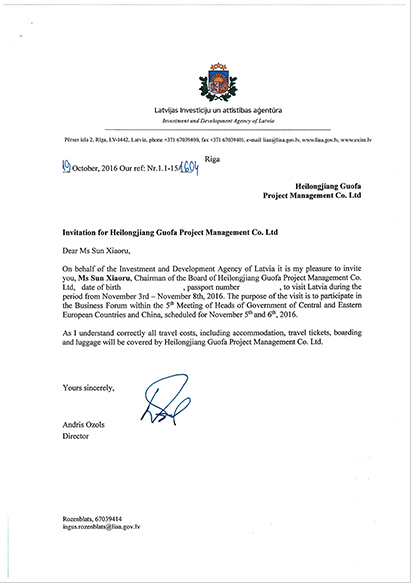 拉脫維亞投資發(fā)展署邀請函